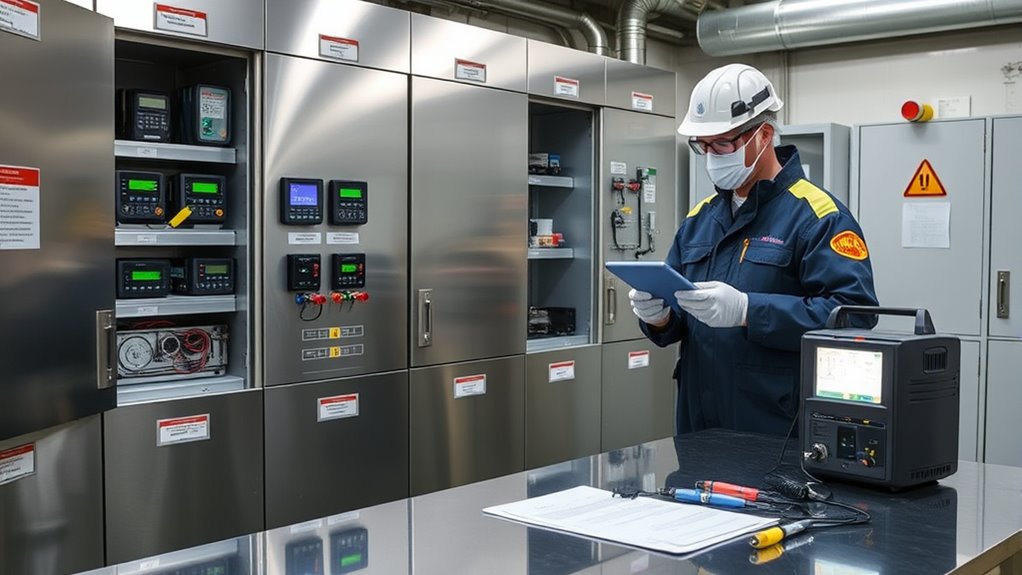 You must retain records of testing for at least one year, including maintenance schedules and calibration procedures. This guarantees compliance with NFPA 110 and helps verify that your equipment operates correctly over time. Regularly updating and securely storing these records allows you to track performance, schedule necessary maintenance, and demonstrate proper testing procedures, which are essential for safety and regulatory adherence.