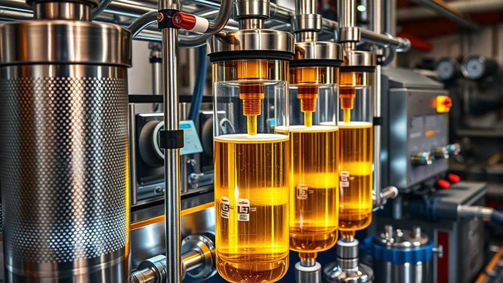 Fuel polishing and filtering systems remove water separation and particulate contaminants from your fuel. They cut through water, preventing corrosion and engine damage, and trap dirt, rust, and debris that can clog filters and injectors. By continuously cleaning your fuel, these systems guarantee cleaner combustion, improve engine performance, and extend your equipment’s lifespan. Regular use keeps your fuel system in top shape, reducing costly repairs and downtime.