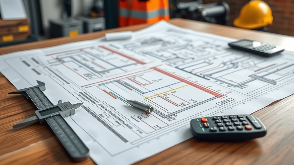 Calculating the correct gas line diameter is essential for guaranteeing safety, efficiency, and code compliance. To do this accurately, you’ll need to use specific tools and techniques. One common method involves utilizing flow rate calculators or software that considers pressure loss, pipe length, and gas demand. These tools help you determine the ideal diameter to prevent gas leaks and maintain proper flow. When planning your gas line, remember that pipe insulation can influence overall safety and efficiency, especially in colder environments. Proper sizing also aids in effective gas leak detection, making it easier to identify issues early. Additionally, understanding gas flow dynamics can enhance your ability to select the right pipe dimensions and optimize system performance. By applying these tools and techniques carefully, you ensure your gas system operates safely and adheres to all relevant codes.