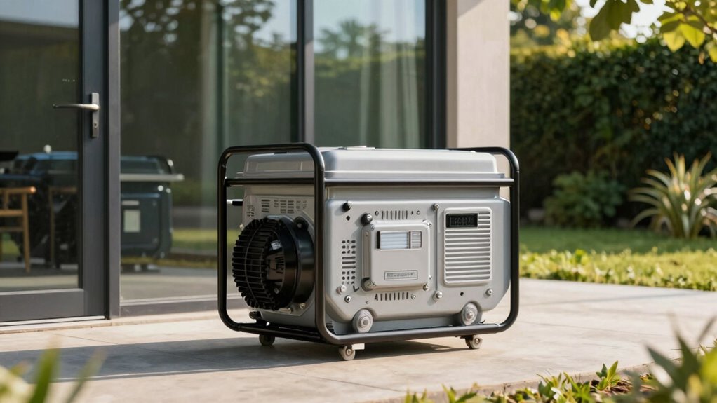 Ventilation requirements are equally critical. Generators emit exhaust gases that contain harmful substances like carbon monoxide, which can quickly accumulate in enclosed or poorly ventilated areas. To prevent the risk of poisoning, you must keep your generator outside and well away from any openings—doors, windows, vents—that lead into your home or building. The general rule is to position the generator at least 20 feet away, with the exhaust directed away from any openings. Proper ventilation not only protects your health but also ensures efficient operation of the generator, as overheating or carbon monoxide buildup can impair performance or cause damage. If you’re working in a space where airflow is restricted, increasing the distance even further is prudent. Additionally, recent advancements in AI-powered safety systems can help monitor exhaust emissions and alert you if levels become unsafe, adding an extra layer of protection. It’s also important to be aware of local regulations that may specify minimum distances for safety compliance.