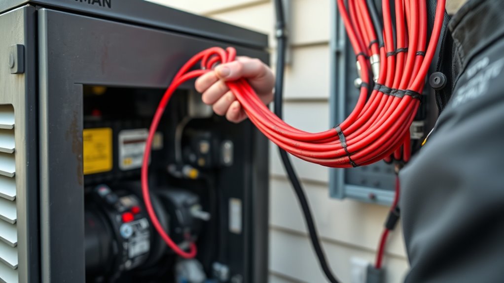 Wiring a standby generator requires careful planning and precise execution to guarantee your system operates safely and reliably. One of the most critical components in this process is choosing the right transfer switch. Transfer switches act as the bridge between your generator and your home’s electrical system, ensuring power flows smoothly and safely during outages. When selecting a transfer switch, you’ll encounter two main options: manual and automatic. Understanding the differences helps you determine which best suits your needs.