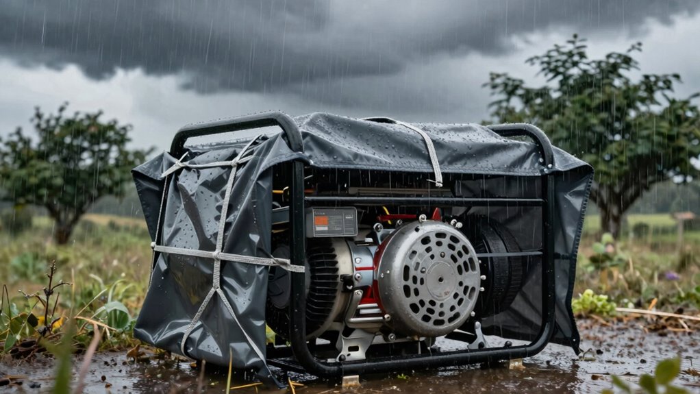 Have you ever wondered how to keep your generator running smoothly during heavy rain? Rain can threaten both your generator’s performance and longevity, but with the right precautions, you can protect it effectively. One of the key concerns is maintaining fuel efficiency, since wet conditions can cause your generator to work harder, consuming more fuel. Making sure proper shelter and ventilation helps your generator operate at ideal levels, reducing unnecessary strain and conserving fuel. When your generator is exposed to rain, it risks water ingress into essential components, which can lead to corrosion or electrical shorts that impair efficiency. Covering it with a waterproof shelter keeps moisture out and helps maintain steady fuel consumption, saving you money in the long run. Additionally, natural pools integrated into your backyard design can create a more eco-friendly environment that complements your generator setup.