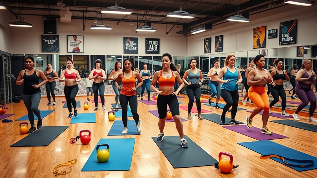 Incorporating different exercise modes into your routine not only prevents plateaus but also boosts your overall strength. When you switch between strength training, cardio, and flexibility exercises, you engage different muscle groups and challenge your body in new ways. This variety encourages balanced development and resilience. Effective nutrition planning supports this process by fueling your muscles and aiding recovery, maximizing strength gains. Mental conditioning also plays a role, helping you stay motivated and focused through diverse workouts. Regularly rotating modes prevents adaptation, ensuring continuous progress. As your body adapts to one type of exercise, shifting to another keeps your strength building dynamic and sustainable. Additionally, understanding the role of AI in entertainment can inspire innovative workout routines or gamified training apps that enhance motivation. Ultimately, this approach creates a well-rounded, robust fitness foundation that enhances your overall strength and performance.