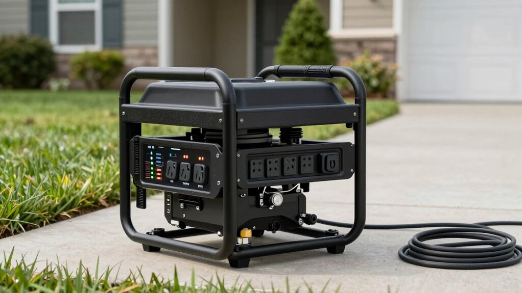You’ll notice the noise levels of portable generators vary widely—some are surprisingly loud, reaching 70 decibels, akin to a vacuum cleaner. Others operate more quietly, around 50 decibels, similar to a normal conversation. Sound insulation can help, but if peace and quiet matter, choose a model with lower decibel ratings. Imagine your evenings undisturbed, the hum of your generator blending into the background rather than dominating it.