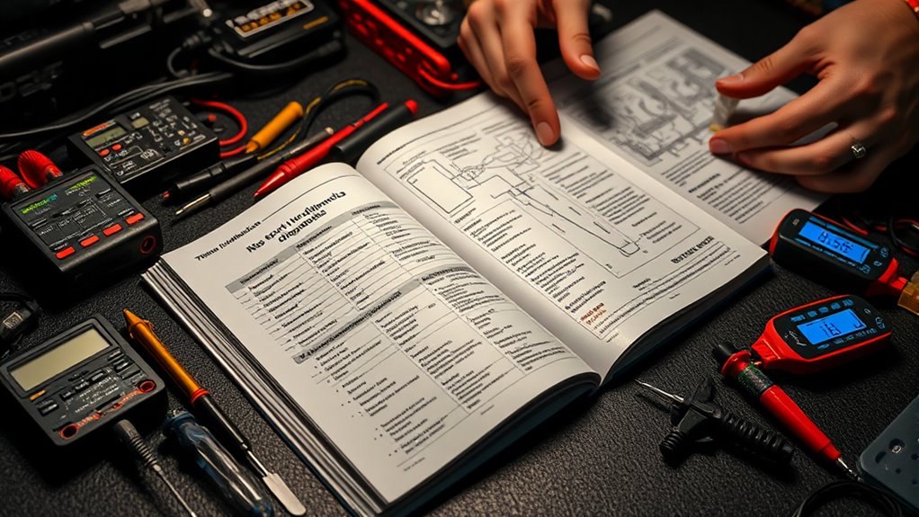 Diagnostic codes are valuable tools, but they can also be misleading if not properly understood. A code indicating a spark plug issue might seem straightforward, but it could stem from a faulty starter relay or wiring problem. Misinterpreting these codes can lead you astray, wasting time replacing parts that aren’t the root cause. For example, a code pointing to a spark plug might actually be due to a weak signal from a failing starter relay. It’s essential to verify the context and test components before jumping to conclusions. Relying solely on codes without further diagnosis risks overlooking simple fixes. Additionally, understanding cybersecurity vulnerabilities related to diagnostic tools and vehicle systems is crucial as modern diagnostics become more connected.