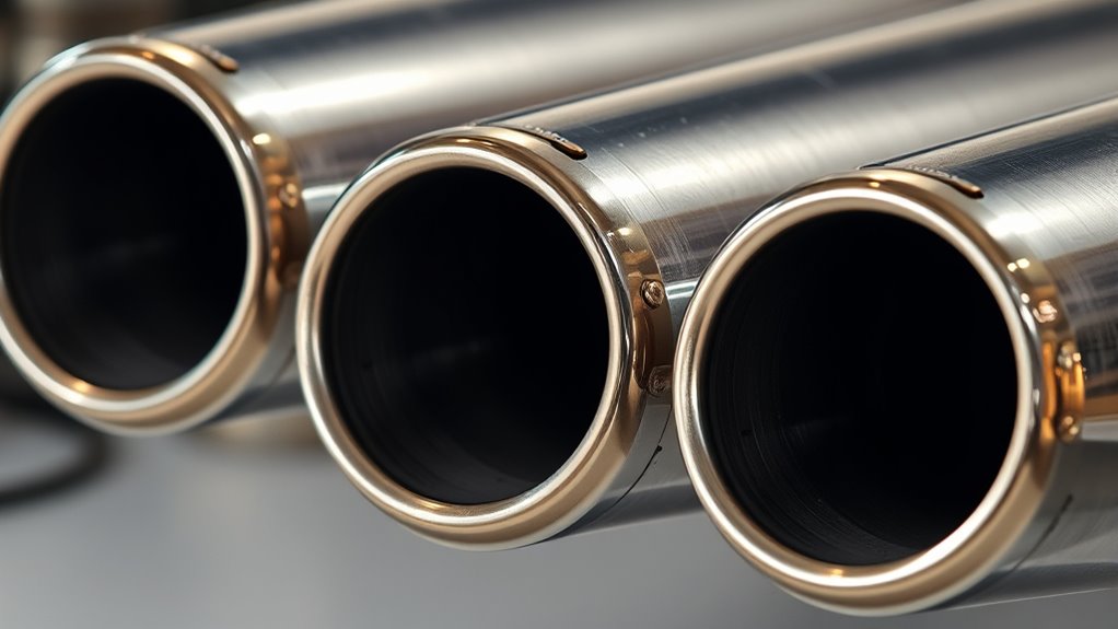To effectively reduce noise, you need to contemplate how well a muffler diminishes sound levels, which is often measured by decibel decrease. Some models can cut noise by over 50%, offering significant quietness. However, performance depends on proper installation and secure mounting; loose fittings can lessen noise reduction. Mufflers equipped with sound-absorbing materials, baffles, or resonators generally provide better noise control. Keep in mind that the effectiveness can vary based on your generator’s size, engine type, and how well the muffler fits your specific model. Sometimes, a muffler alone isn’t enough, and additional acoustic barriers may be necessary for maximum quietness. Prioritizing these factors ensures you choose a muffler that truly minimizes noise while maintaining performance.