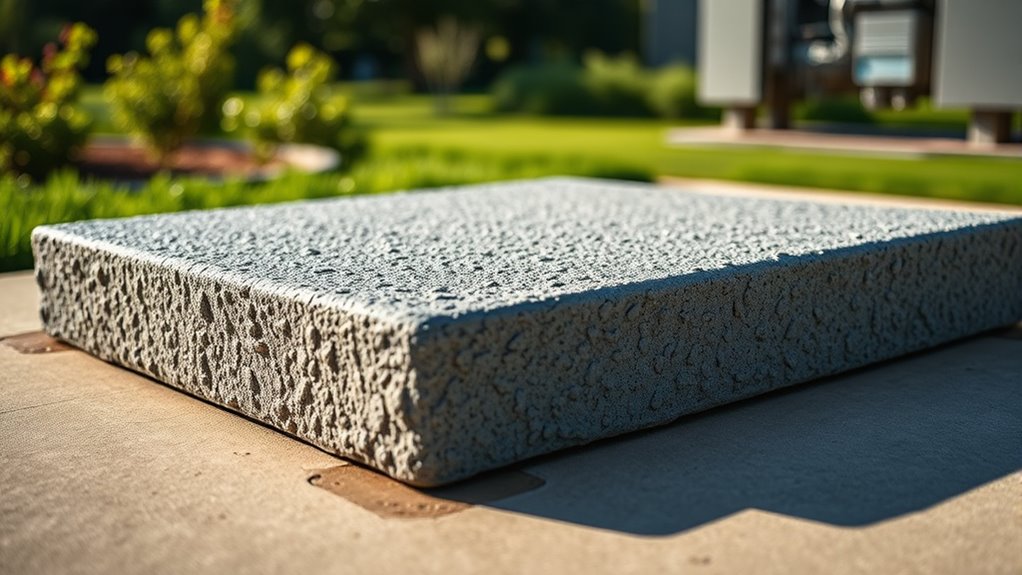 Durability of a Cummins generator pad largely depends on its ability to withstand environmental elements such as moisture, UV rays, and temperature changes. I look for pads made from materials that resist water absorption, preventing corrosion and electrical issues. A non-porous surface or treatments that repel water are essential for longevity. Resistance to chemicals like oils, fuels, and cleaning agents is also vital, especially in harsh environments. Proper drainage design helps avoid water pooling, which can cause damage over time. Weather-resistant coatings or treatments further extend the lifespan of the pad by protecting it from the elements. When choosing a generator pad, I prioritize environmental resistance to guarantee my equipment remains safe, reliable, and durable despite the weather conditions it faces.