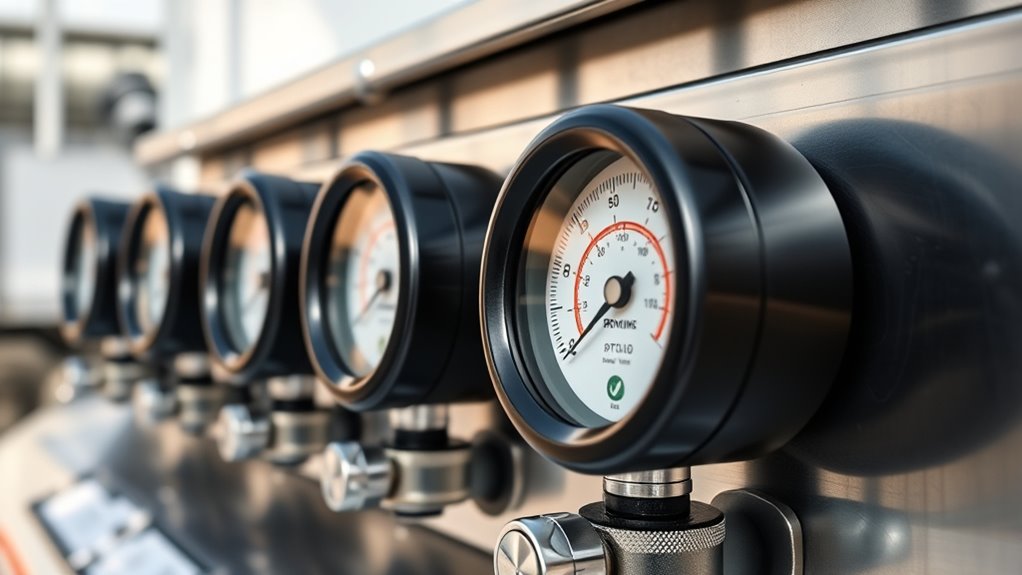 Choosing the right Cummins propane tank gauge depends largely on making certain it’s compatible with your specific tank. First, check that the gauge fits tanks with QCC1 or Type 1 fittings, which are common for most portable and stationary cylinders. Next, verify that it can handle your tank size, whether it’s 5 lb or 40 lb, so it provides accurate readings. The connection type matters too—make sure it matches your tank’s outlet, whether threaded or quick-connect, for a secure fit. Also, confirm that the gauge is designed for your tank’s orientation, like vertical or horizontal, and that it supports any necessary adapters or regulators. Proper compatibility guarantees safe, reliable monitoring without hassle.