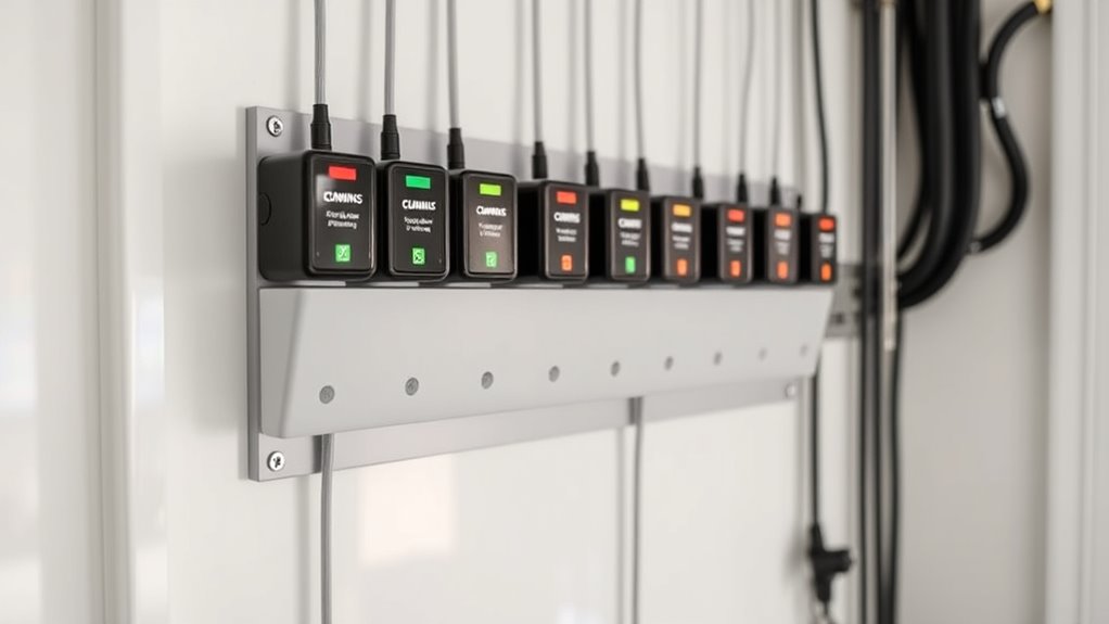 Choosing the right Cummins whole house surge protector involves considering how complex the installation process will be. Depending on the device type—Type 1 or Type 2—the installation can vary considerably. Type 1 units often require outdoor mounting and connection to service entry points, which can be more involved, while Type 2 models usually install inside the main panel. Proper installation demands electrical knowledge, including breaker sizing, grounding, and wiring lengths, to guarantee ideal performance. Short, direct wiring runs are typically necessary, which can be challenging in confined or intricate setups. Additionally, some protectors need dedicated breakers with specific ratings or configurations, sometimes requiring panel modifications. Because of these factors, professional installation is highly recommended to ensure safety, code compliance, and maximum surge protection.