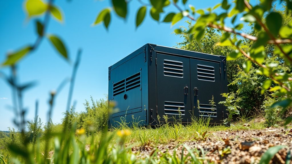 Choosing the right generator enclosure is like finding the perfect shield to guard your home’s power source. With options ranging from waterproof covers to heavy-duty shelters, you can guarantee safety, durability, and quiet operation. Remember, a well-chosen enclosure isn’t just a box — it’s the fortress that keeps your power running smoothly through any storm. Invest wisely, and your rural home will stand resilient, fortified against nature’s unpredictable storms.